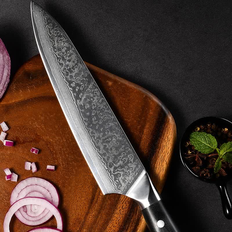 About Gyuto:Gyuto is another type of Japanese knife that makes perfect all-purpose cutters, slicers and kitchen knives. Although its blade is thin, it retains its length and circular shape, making it easy to cut meat, fish and vegetables. Its shape and thickness are achieved by the method of making a katana, which slices the fibers of food rather than crushing them. This makes it a very useful knife to keep meat fresh and lock in its flavor.