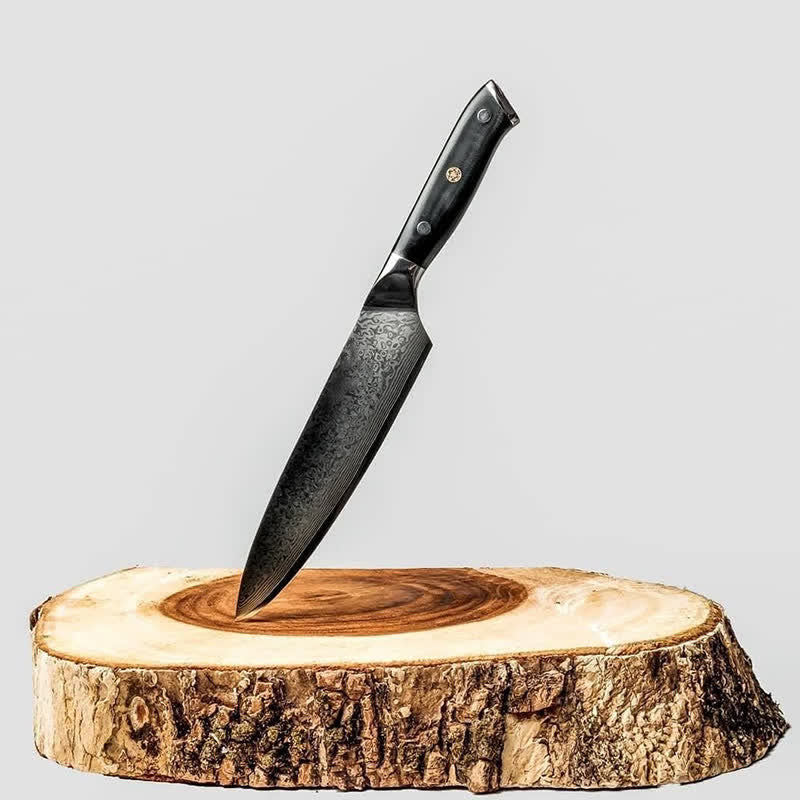 About this item: Our multi-purpose 8” chef knife exemplifies what happens when high quality craftsmanship harmonizes with superior build and materials. Comprised of a high-retention , subliminally sharp blade with a triple-riveted military-grade handle, this stainless steel, high carbon knife embodies what high-end, high-performance cutlery looks like.
