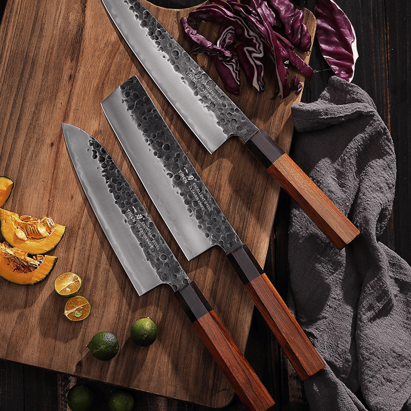 All featured knives are hand-made in Asia,Each of them is carefully heat-treated and sharpened to perfection for razor-sharp cutting and extreme durability. Applying ergonomics and mechanical levers principles, we greatly improve customers’ cutting experience.